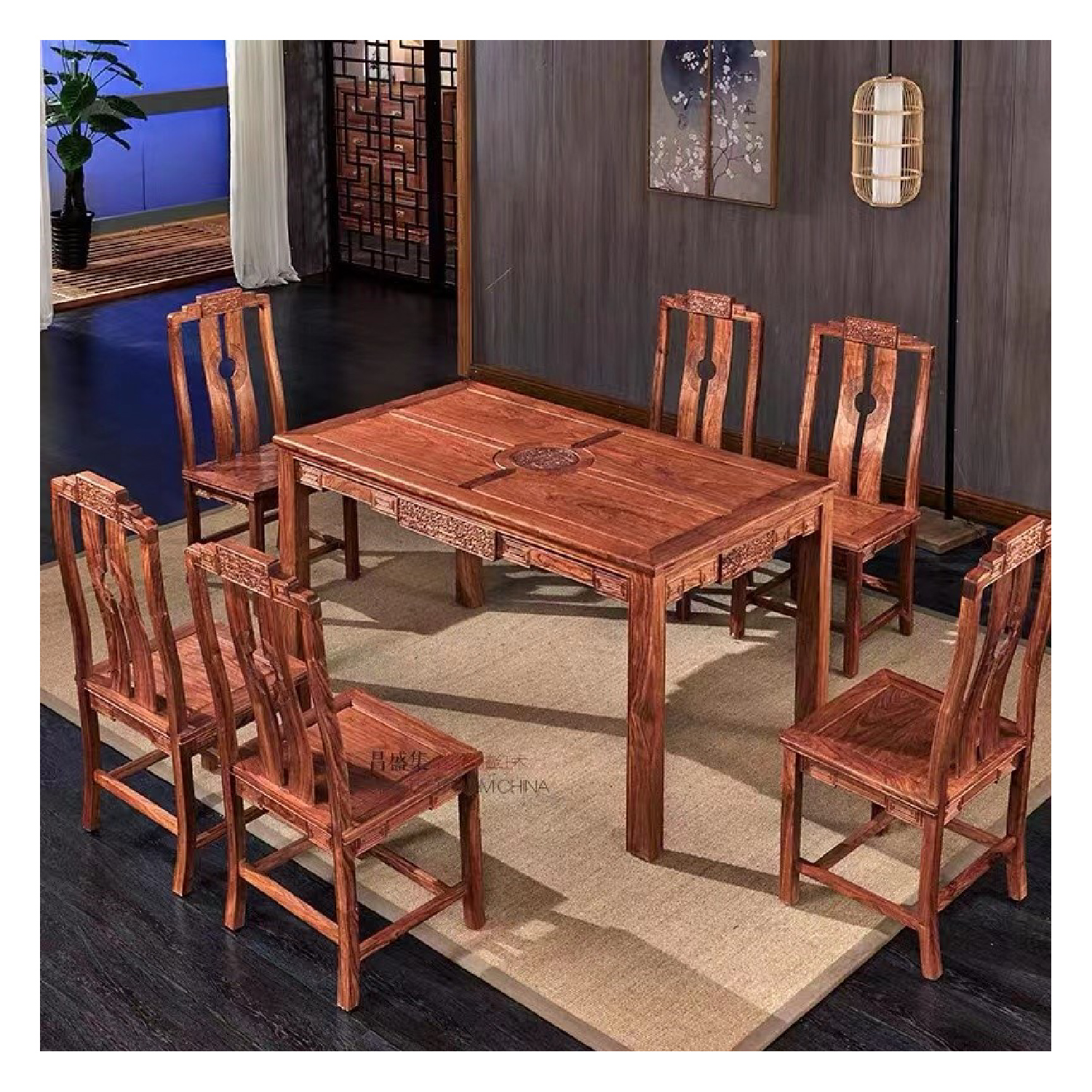 产品描述:祥云月圆餐桌古雅气韵,细腻的线条,全方位用心制作,传统祥云图案,新中式风格的餐椅,感受古典和时尚的人文气息,完美展现中式文化的美感。
